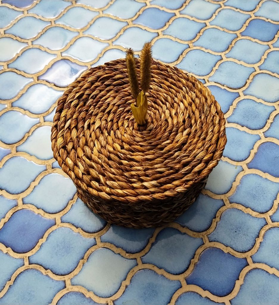 Quelques feuilles d’hemerocalles tressées et cousues